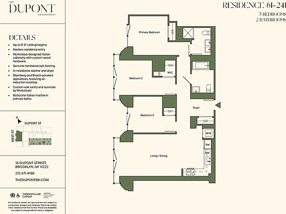 Meet The Dupont, a 41-story residential tower crafted with meticulous design and unmatched views of the East River and Manhattan skyline. This exceptional residential tower offers a collection of studio, 1, 2, and 3-bedroom residences designed by the award-winning Brooklyn-based AD100 interior design team, Workstead. Residences feature ceiling heights of up to 9' 8" and genuine hardwood oak flooring. Modern conveniences include keyless entry access, energy-efficient climate control, and in-unit washer and dryers.