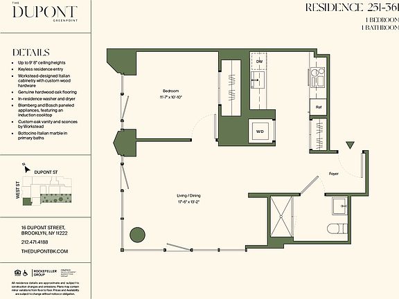 Meet The Dupont, a 41-story residential tower crafted with meticulous design and unmatched views of the East River and Manhattan skyline. This exceptional residential tower offers a collection of studio, 1, 2, and 3-bedroom residences designed by the award-winning Brooklyn-based AD100 interior design team, Workstead. Residences feature ceiling heights of up to 9' 8" and genuine hardwood oak flooring. Modern conveniences include keyless entry access, energy-efficient climate control, and in-unit washer and dryers.