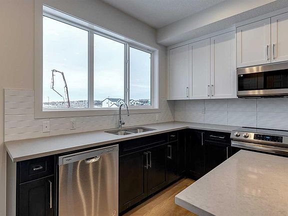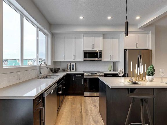 Excellent value in Sunset Ridge ... Introducing the Edinburgh by Douglas Homes Master Builder ... a stylish three-storey townhouse offering 3 bedrooms, 2.5 bathrooms, and a double-attached garage, all with no condo fees. Thoughtfully designed for comfort and convenience, this home features a ground-level flex room that’s perfect for a home office, gym, or hobby space. The open-concept main floor showcases 9' ceilings, engineered hardwood throughout, and a bright living area anchored by an electric fireplace. The modern kitchen is finished with quartz countertops, stainless-steel appliances, and a central island that’s ideal for casual dining and entertaining. Upstairs, you’ll find three bedrooms including a spacious primary suite with walk-in closet and private ensuite, along with the convenience of upper-floor laundry. Completing the home are a raised treated-wood deck, full front landscaping, and a concrete patio ready to enjoy from the moment you move in. Located in the family-friendly community of Sunset Ridge, you’re close to RancheView School, parks, and pathways with easy access to Calgary and the mountains. Quick possession available. Key Highlights | Three-Storey Townhouse | No Condo Fees | Double-Attached Garage | Ground-Level Flex Room | Full Landscaping | 9' Ceilings | Quartz Countertops | Engineered Hardwood on Main | Upper-Floor Laundry | Electric Fireplace | Treated Wood Deck | Concrete Patio Please note: Landscaping and yard completion are seasonal items and subject to weather conditions.