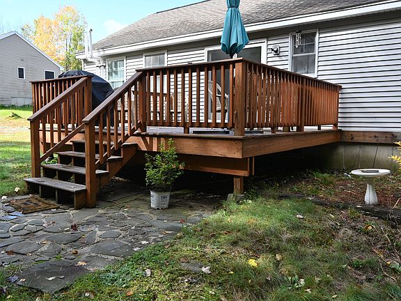 Efficient, single-level living, conveniently located on Easy Street, a peaceful dead-end cul-de-sac, convenient to Sebago Lake and all that the Standish / North Windham / Gorham region has to offer. This lot is adjacent to common land, providing even more privacy, and is adjacent to the Steep Falls Wildlife area, with close access to recreational trails. Enjoy the backyard from the back deck and utilize the 12 x 12 shed to store your tools and toys. Open concept living room. Primary bedroom features half bath. Basement offers great storage. Ramp at front door currently provides accessible entry to home - but original steps are still in place should the new owner wish to remove it. Allow 48 hour response time for any offer.