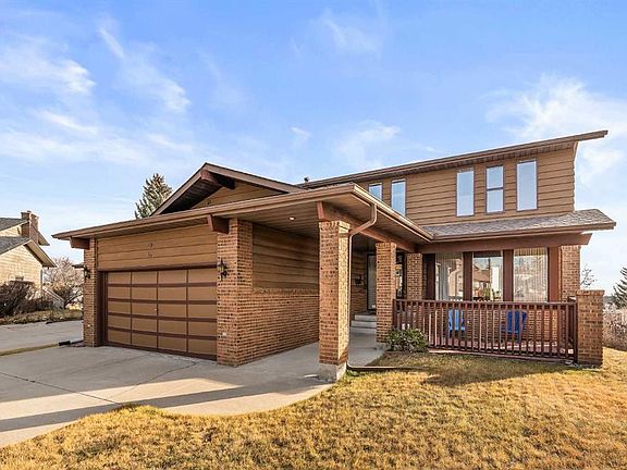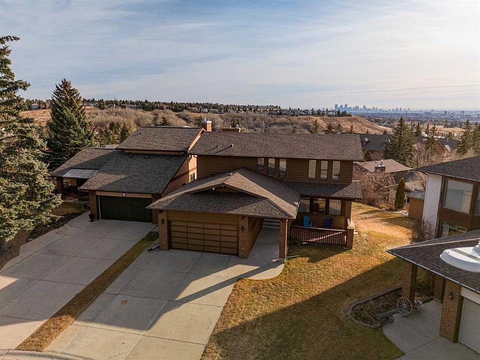Welcome to 16 Edgeland Bay NW, a remarkable two-storey home in the prestigious community of Edgemont. Perfectly situated on a massive pie-shaped lot of over 11,100 sq. ft., this property enjoys a quiet cul-de-sac location and offers sweeping panoramic views of the city skyline—a true one-of-a-kind setting. The exterior showcases a timeless design with a striking blend of brick and wood siding, complemented by painted trim accents. A covered front porch creates a welcoming entrance and adds charm to the façade. Inside, the main level offers a thoughtful and spacious layout featuring a bright living area, a formal dining room, and a kitchen complete with appliances and plenty of cabinetry. Adjacent to the kitchen is a cozy nook and a family room highlighted by a classic brick wood-burning fireplace with a full mantel, creating the perfect spot for relaxing evenings. This level also includes a 3-piece bath, laundry room, and convenient access to the first balcony, where you can step outside to enjoy the breathtaking city views. Upstairs, the home provides ample family space with three bedrooms. The primary suite features its own 4-piece ensuite, walk-in closet, and a private balcony overlooking the city. While the second and third bedrooms are accommodated by a shared 3-piece bathroom. A spacious bonus room complete the upper level, offering multiple spaces to relax and enjoy the views. The walk-out basement extends the living space and is fully finished with a huge family/recreation room, a dining area, and a second kitchen—perfect for multi-generational living or entertaining. A 2-piece bath, plus an unfinished storage and utility room, provide both functionality and flexibility. Step outside to the concrete patio, an ideal setting for outdoor gatherings. The expansive backyard is beautifully maintained and features not one but two garden sheds for extra storage. With its size, privacy, and sweeping views, the yard is a true outdoor retreat. This home also features upgrades such as a new hot water tank (replaced in 2021), new furnace (replaced in 2012) and a new water softener (replaced in 2012). Located in the highly sought-after community of Edgemont, residents enjoy top-rated schools, abundant parks and pathways, and easy access to shopping, transit, and major routes. Don’t miss this rare opportunity to own a view property on an oversized lot in one of Calgary’s most desirable communities. 16 Edgeland Bay NW offers space, character, and unmatched potential—schedule your private showing today!