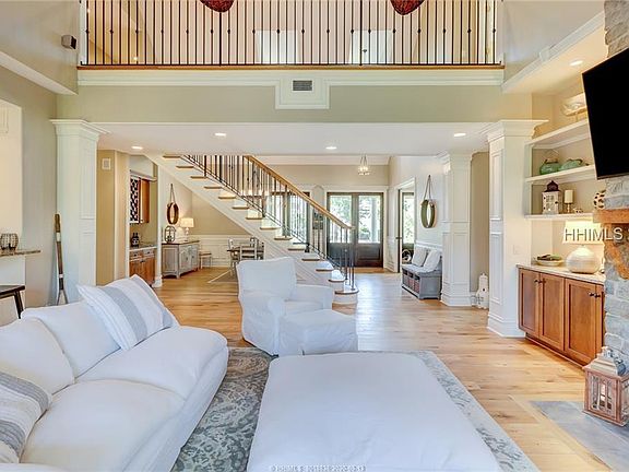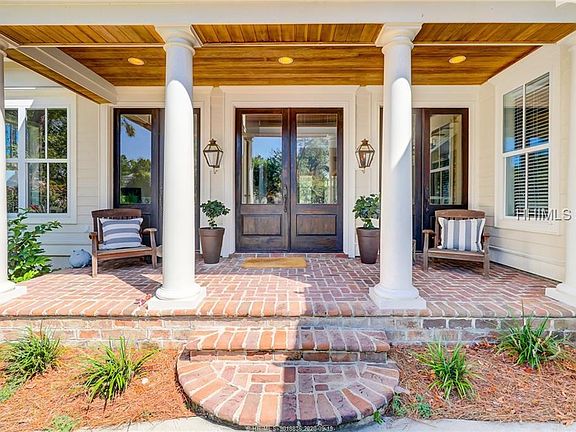 This Island home is the epitome of "Southern Charm" architecture and grace on Ellis Court. Placed in convenient mid-island, neighborly community close to all town amenities: shopping, restaurants, hospital, beaches. Gaining nearly 4500 sqft of high end luxurious finishes for well under $1M is a smart buy. An elegant family home with welcoming gas-lit front porch and very large rear screened porch framing long views of our golf and water. Also included is private home office, crafting room, workout space and purposeful flex space above garage. The eat-in gourmet kitchen w/farmhouse sink looks to great room fieldstone hearth and built-ins. WOW!