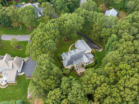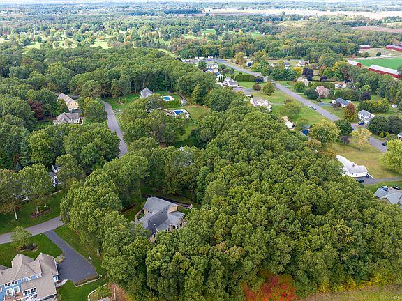 Magnificent custom-built home by Santini Builders showcasing superior craftsmanship and over 5,000 sqft of living space. The welcoming covered porch opens to a grand foyer with direct views of the formal living room featuring 10ft ceilings, gas fireplace, and custom built-ins. A formal dining room with coffered ceiling, crown molding, wainscoting, and gleaming hardwood floors creates an elegant setting. The gourmet kitchen is equipped with high-end appliances including Viking refrigerator, oven with warming drawer and Microwave, GE gas range with downdraft, wine cooler, and custom rollout cabinetry. The 3-season sunroom and grilling deck provide perfect spaces to relax. The main-level primary suite offers a tray ceiling, custom walk-in closet, and spa-like bath with soaking tub, shower, and dual vanities. Upstairs has two elegant bedrooms with 9ft ceilings & full bath which compliment the home. Access to an unfinished attic could easily be finished. The custom built walkout lower level boasts floor-to-ceiling windows, full wet bar, media built-ins, half bath, and two soundproof ensuite bedrooms ech with full baths. French doors lead to a patio overlooking a serene professionally landscaped 1.47-acre private lot. Ideally equipped with a new gas heating system (2022), dual AC units (2023), whole-house generator, irrigation system, central vac, and 3-car garage. Conveniently located near Ellington Ridge Country Club. Come see this amazing home with all the amenities you need.