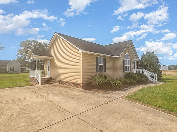 This 3-bedroom, 2-bath home is tucked away on a quiet cul-de-sac in Newton Grove, offering peace and privacy while still being just minutes from I-40. Inside, you'll find a comfortable, open layout with a spacious living room that flows into the dining area and kitchen—great for everyday living or hosting friends and family. The kitchen has plenty of cabinet space, durable countertops, and a cozy breakfast nook. The primary bedroom features a walk-in closet and its own private bathroom, while the two additional bedrooms share a full hall bath. Outside, enjoy a generous backyard with room to relax, play, or garden, along with a deck or patio space for outdoor dining. There's also a laundry room and plenty of parking. With no HOA and public utilities, this home is a great option for anyone looking for an easy, low-maintenance lifestyle in a small-town setting with an easy commute to Fayetteville or Raleigh.