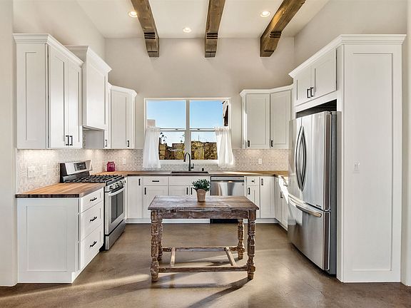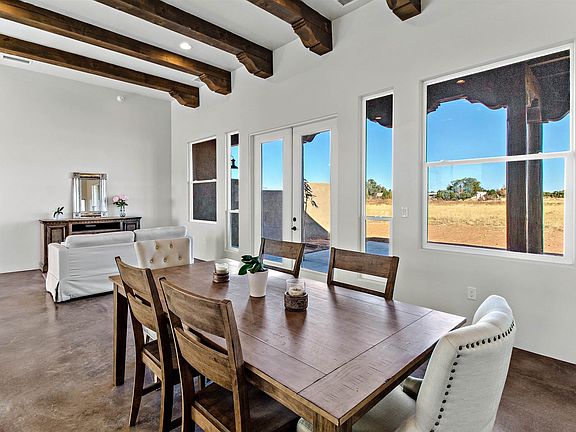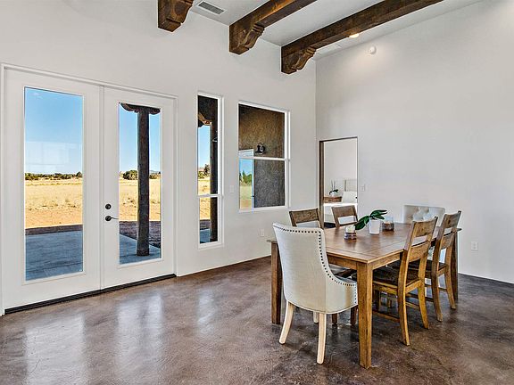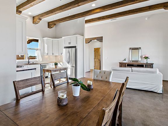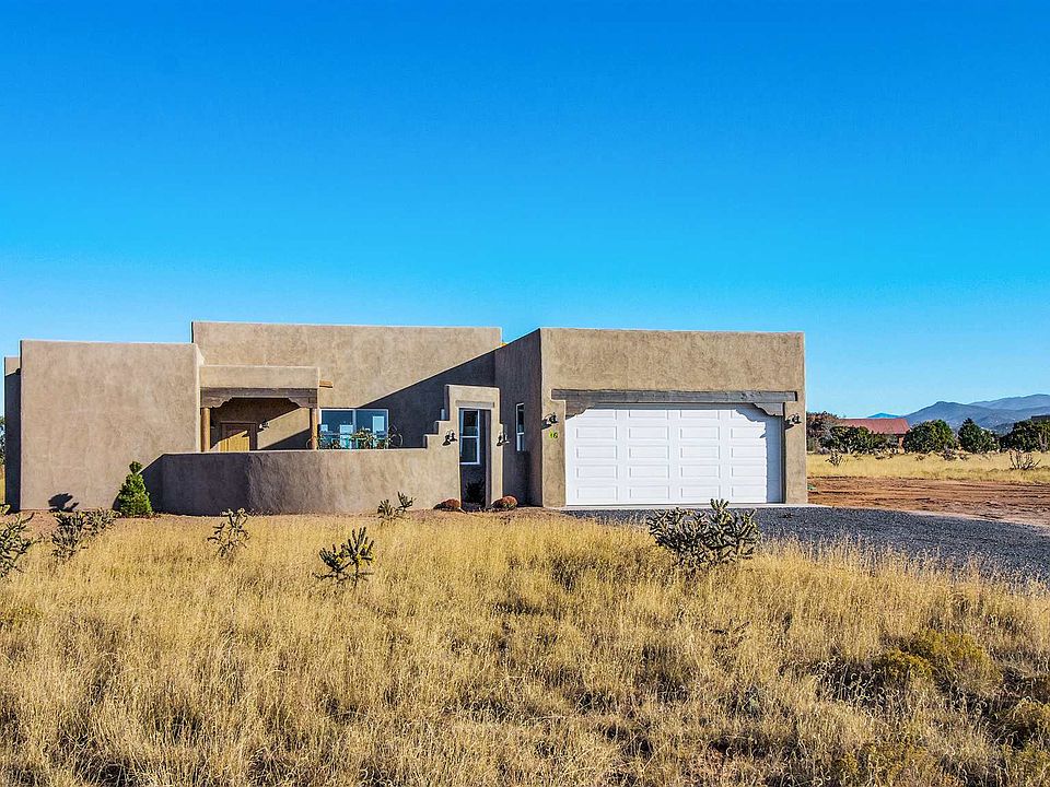 Beautiful Brand New Home with solid 2 x 6 frame construction with views for miles! Clean and ready to move into! Quiet Eldorado home sitting on 1.72+/- acres. High end LG appliances including a gas range. High end extra tall cabinetry and beautiful stained butcher block countertop really completes the look of the open kitchen. Bath fixtures are well thought out and high end with easy to clean smooth porcelain tile. Marble shower floor in Master Bath. Santa Fe style Vanity in guest bath. Every room has windows. Lots of light. Tall 12' ceilings in main living/dining/kitchen area and 9' ceilings in bedrooms and baths. Open concept living, dining, and kitchen area. Great for entertaining! Bright airy spaces. Front courtyard as well as private dining area out back with views of the mountains. 5 ton HVAC system with air conditioning included! Insulated and finished double car garage. Very well insulated!! Property is on it's own Brand New well. Extra deep drilled well for added long term security. High end industrial grade TPO roof. In the Eldorado community school district. Eldorado also has a community pool and tennis courts as well as a dog park. You will LOVE living here!