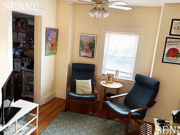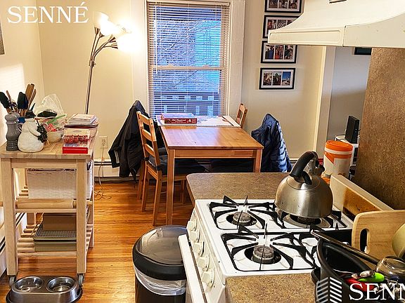 Picturesque third floor 1.5 bedroom overlooking a shaded garden space. The unit includes a spacious galley kitchen and large pantry area that walks out onto a porch area and fire escape. The building has a common courtyard, storage cubbies and bike storage. The building does have coin op laundry in it. It is minutes away from Cambridge's bustling Porter Sq and not far from the new Union Square Green line stop.