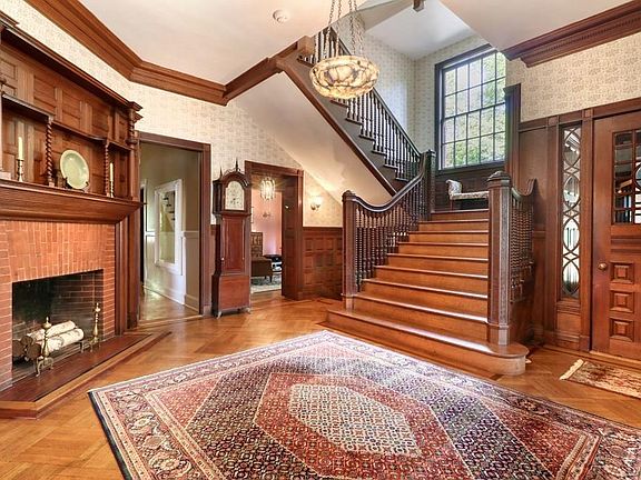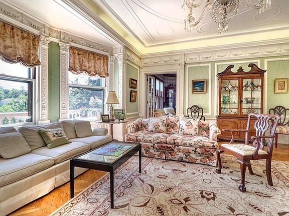 Exquisite original details beautifully blend with modern amenities in this regal historic 7 bedroom home designed by renowned Boston architects, Peabody and Stearns. Magnificently sited in a park like setting with sweeping views from every room. The ''Bayley House,'' named after its first owner showcases intricately carved woodwork and ceilings and a grand staircase with a two story Palladian window overlooking lush gardens. The floor plan is composed of adjoining rooms including cherry paneled family room, magnificent living room, unrivaled paneled dining room with glass enclosed three season porch access- all with impressive fireplaces; and a granite-clad eat-in kitchen with high end appliances and a custom designed breakfast room. Superb two room master suite w/, fireplace, two bathrooms, dressing room & gorgeous views, three additional bedrooms, study and two baths comprise the second floor. Third floor offers family room, Au pair suite & teenage get away. New two car garage