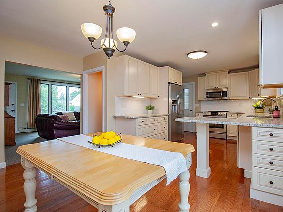 Enjoy the Ease of One Level Living! Located in the Goffstown School District, this carefully maintained 3 bedroom Ranch home boasts a new kitchen, new bath, beautiful hardwood floors and all new windows. The new kitchen with dining area showcases granite countertops, stainless appliances, ample storage, and a simple, yet beautiful backsplash highlighted by under cabinet lighting. Sliders off the dining area open to a large deck overlooking the grassy, fenced in outdoor space perfect for relaxing, entertaining, and fun of all kinds. You will appreciate the additional living space on the lower level offering ample for a family room, workout space, craft room, or storage. The oversized detached 2-bay garage includes a separate workshop area and 3rd garage door that opens to the backyard. Plenty of off-street parking makes it easy to move about. Nestled in a neighborhood and conveniently located to all the conveniences. This is a terrific home -- looks like new inside – carefully maintained, freshly painted, sparkling clean and move-in ready. Welcome Home! Showings begin at Open House on Thursday, 6/29 from 2-4pm. There will be multiple weekend open houses and private showing time available. See MLS #4959192