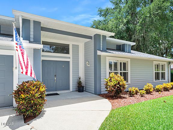 Whispering Oaks is a hidden gem in the middle of Ormond Beach! This gorgeous 3 bdrr/2.5 bath pool home sits on a large, treed lot at the end of a cul de sac. SELLER WILL INSTALL A NEW ROOF PRIOR TO CLOSING! With volume and vaulted ceilings, new consistent flooring, beautifully updated kitchen and primary bath this home will not disappoint. The open floor plan includes a Great Room w/volume ceiling, fireplace and a wall of windows for natural light.. The dining room opens to the kitchen and great room and has copious cabinetry and serving bar. In the kitchen you will find tons of natural light, new cabinets ,quartz counters, appliances, lighting and island. The kitchen area includes a flex space to meet your family's needs. Perfect for cozy TV area, kids toys and more! The primary suite is roomy wi/ a vaulted ceiling, huge walk in closet and a beautifully renovated bath! Designer touches include the shower with 'waterfall' of stone, gorgeous tile double sinks and vanity area, soaking tub and new lighting. You'll find two good size guest bedrooms at the front of the home with a guest bath. Outdoors is a courtyard with screened, tiered pool and spa and a half bath. This home is perfect for entertaining as the pool opens to great room, primary bedroom and kitchen. The private yard is .4 acres with conservation to the east. You can easily walk to Central Park via an HOA trail to enjoy walking/running trails, lakes and a playground. View the shuttle launches from the great room or even better, from the top tier of the pool area! The permit has been pulled and a new roof will be installed prior to closing. The home has plantation shutters thru out, updated fans and lighting, leaf filters in all gutters with lifetime guarantee against clogging. You will also find a brand new a/c system on the bedroom side and a three year old top of the line unit in the main living areas, exterior and interior paint was done three years ago, newer hot water heater and more! This location is central Ormond and convenient to the beach (3 miles), grocery, golf, restaurants, I95 and more!! So easy to live the Florida lifestyle here. Add this home to your must see list!!