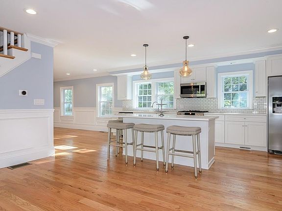 NEW PRICE! Well thought out 4 bedroom NEWLY CONSTRUCTED home with OPEN FLOOR PLAN to suit today's life style. Featuring a family room with vaulted ceiling and fireplace, kitchen with top of the line appliances, generous cabinets and a large island, a gas fireplaced sitting area, glass doors to office, powder room, side entry into mud room, a welcoming front porch as well as a large rear deck leading to the well landscaped yard. The master bedroom area has a walk-in closet, and master bath with oversized glassed shower and double sinks. Finished lower level offers a 400 sq.ft.playroom, a separate laundry room, and plenty of extra storage space. Attention to detail is evident with ceiling moldings, chair rails, and hardwood floors. Located in a very desirable Westwood neighborhood that is close to shopping, dining, Legacy Place, University Avenue, and transportation to Boston, Providence and New York: a commuter's dream location in a town with an excellent school system.