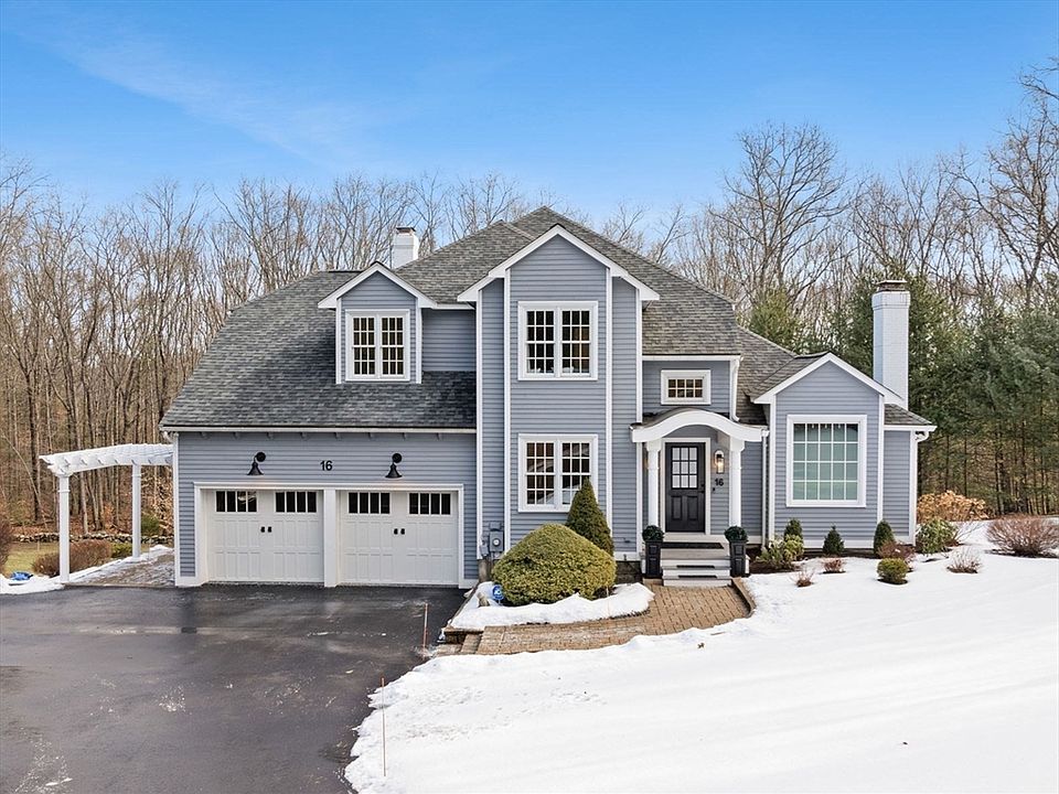 Welcome to this stunning colonial, a true masterpiece that radiates pride of ownership and meticulous craftsmanship. Nestled at the end of a beautiful cul-de-sac on nearly 2 acres, this elegant residence offers 4 spacious bedrooms and 4 baths. Enter through the grand foyer with soaring ceilings that set the tone for the refined beauty throughout. The bright and cheerful kitchen flows seamlessly into the family room highlighted by a cozy fireplace and sliding doors that lead to a composite wraparound deck—perfect for entertaining while enjoying breathtaking views of nature at its finest. The primary suite is a serene retreat with a spa-like bath featuring a jetted tub, tiled shower, and a generous walk-in closet. The lower level is an ideal setup to host in-laws or guests w/ a full bath and plenty of living space, oversized windows, and sliding doors to a koi pond. Lots of upgrades throughout. You won't be disappointed in this beauty!!