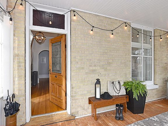 Step inside this stunning 1890 blonde brick century home and experience the perfect blend of timeless charm and modern updates. From the sun-soaked front porch to the soaring 9' ceilings, stained glass accents, rich wood trim, and original hardwood floors, this residence radiates character at every turn. The spacious layout offers a versatile third-level loft already roughed-in for a bathroom making it the ideal canvas for a dream primary suite, studio, or home office. Outside, you'll find a fully fenced, double lot with ample room for gardens, play, or entertaining. Relax or host with ease on the expansive back deck, complete with a fully screened pavilion-style gazebo for year-round enjoyment. Thoughtful updates bring peace of mind, including a modernized kitchen, main-floor bathroom with heated floors and laundry, and updated second-level bath with walk-in shower. This rare Lindsay gem combines history, character, and practicality in one unforgettable package. UPDATES: 200-amp electrical service, high-efficiency gas boiler (approx. 2018), and 2 heat pumps w/5 indoor units (approx. 2024)