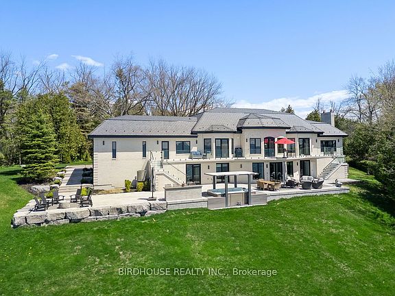 Exquisite waterfront estate with 174 ft of frontage on Lake Simcoe. Stunning panoramic sunset views! Masterfully renovated in 2023, this French country-style bungalow boasts over 6000 sq ft of finished living space, 5 bedrooms, 6 bathrooms & an oversized attached garage. Designer interior finishes such as custom oak swept staircase & oak beams, complete Thermador appliance package, gorgeous amberwood exterior doors, marble kitchen countertops & backsplash, Napa Valley kitchen & bath cabinets plus white oak engineered hardwood flooring throughout! The exterior landscaping is expansive & thoughtful including a wrought iron security entry gate & outdoor LED lighting. Complete privacy & year-round living.