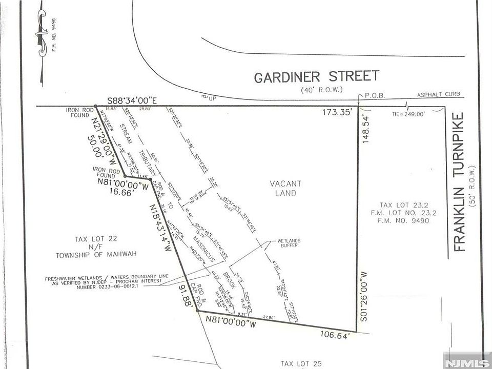 Looking to build your dream home in Mahwah? Struggling to find vacant land? Then don't miss the unique opportunity!! Gardiner Street is located directly off Franklin Tpke and becomes Wanamaker as the road begins to bend. This street is loaded with charm where mature trees create a delicate canopy and no two houses are the same. This half acre is located in the R-10 zone. It is oversized for the zone and can comfortably accommodate your vision. Mostly flat, the land enjoys a brook along the entire south side of the property. I imagine this to be a beautiful visual once the property is cleared. If you need guidance or references for architects, engineers, builders. . . we are here to help! The property is not located in a flood zone and is not deemed wetlands.