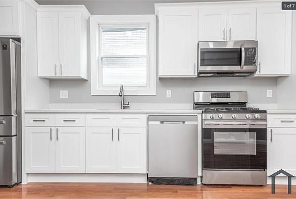 Renovated 2 Bedroom Apartment! Gorgeous brand new renovation on the second floor of triple decker. Unit features high ceilings, open concept living room, dining room and kitchen. High end kitchen with quartz countertops and stainless steel appliances. Sun drenched spacious 2 bedrooms with great closet space. Bathroom features high end finishes and beautiful tile floors.Gleaming hardwood floors throughout and in unit laundry hook-up. 1 Parking spot included. Pets negotiable. Close to many amenities and South Boston beach/night For more properties like this visit Affordable Housing.