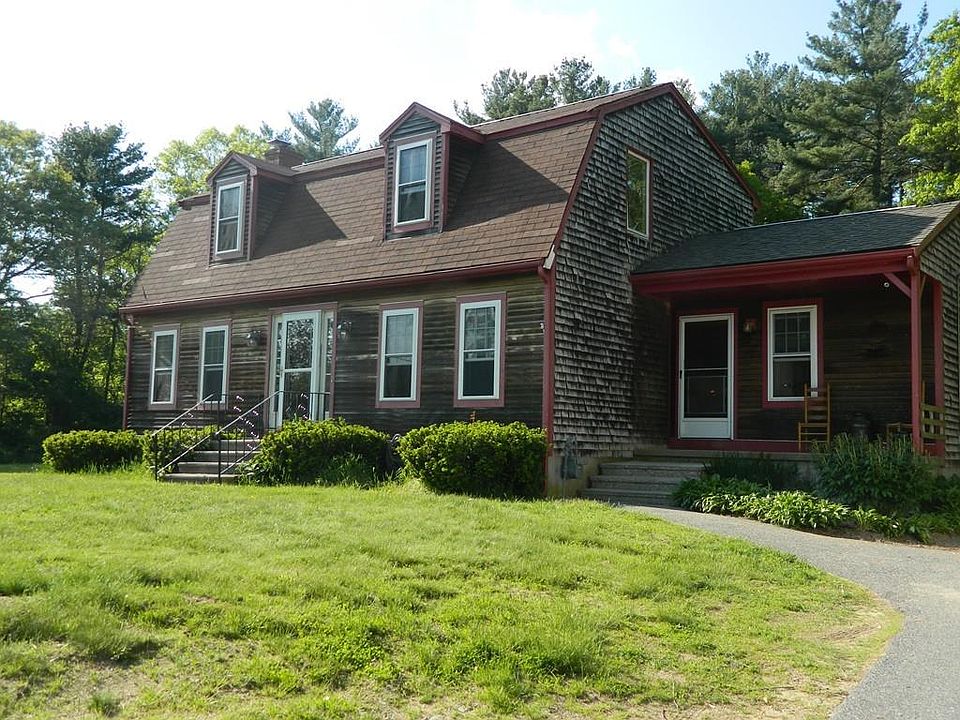 1ST SHOWING AT OPEN HOUSE SATURDAY 12-2 Gambrel sitting on over 3 acres of beautiful land. House sits approximately 620 ft. Off the street on paved driveway! Home is in need of some updating with 1800 square feet of living space. Front to back living room with fireplace, spacious kitchen with dining area with access to 16x18 deck off rear. Lots of perrenial plantings and privacy. Price reflects work needed. Title V Pass system for the 4 bedrooms. Large garden shed with electricity.