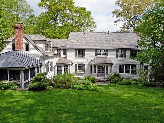 PERFECT family living & custom elegance in this 1930's Colonial, beautifully restored & expanded by acclaimed Boston architect. Light-filled rooms w/ fine craftsmanship, custom built-ins and beautiful vistas. The gracious front entry offers exquisite views of patio & yard. Wonderful entertaining-sized living & dining rooms both w/ fireplaces and a mahogany serving pantry. Your family will love the spacious gourmet kitchen, fireplaced family room, office, oversized screened porch and mudroom w/ cubbies. Upstairs you'll find a gorgeous master suite w/ balcony, bath and dressing room, plus three more bedrooms w/ great built-ins. The finished LL includes a private suite, play & craft room, ample storage and heated 3-car garage. Gracefully sited on 3/4 acre on a pretty street with access to Carisbrooke Reservation trails, easy walk to Farms commuter train and minutes from MA Pike. Rare combination of setting, architecture and space designed for the most discerning buyer.