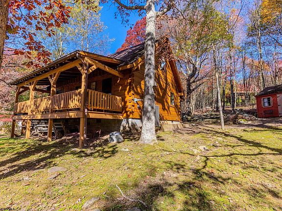 Welcome to 'Beary Blissful', a hand-hewn LOG CABIN, nestled inside the GATED COMMUNITY of ALPINE LAKE RESORT in the picturesque mountains of West Virginia. With a freshly stained exterior, and newer HVAC system, this escape is low maintenance and low cost to own as a primary or vacation home. This inviting retreat will convey mostly furnished with an acceptable offer so all you need to do is show up and unwind! With the resort's hotel close by, you can host friends and loved ones whenever you'd like without the unnecessary expense of a larger home. Watch the seasons change from your private back porch overlooking the forest or relax on the spacious front porch and soak up a sunset. Fire up the pellet stove with thermostat control and watch the snow fall from the comfort of your cozy cabin this winter while the stresses you once had melt away. Alpine Lake is home to a fabulous array of wildlife and waterfowl so you always feel connected to the wonders of nature. Have a hobby you'd like to pursue? This home features a lovely hobby shed as well as a detached garage with bonus workspace! Try out new comfort food recipes in the well-appointed open kitchen with ample storage or have an evening out at the resort's restaurant for dinner and drinks with friends old and new. Stroll down to the SANDY BEACH or boathouse and launch your kayak onto the still, mirror-like water at dawn. Being active is easy with beautiful HIKING TRAILS, an INDOOR HEATED POOL, and a fitness center overlooking the crystal-clear lake! Working from home is a breeze with HIGH SPEED INTERNET and up to a GIG available Breathtaking white winters and cool, breezy summers await you in the mountains of WV. Resort amenities include a 150 acre STOCKED LAKE for kayaking and fishing, 24/7 SECURITY, mini golf, tennis and pickleball courts, SANDY BEACH with swimming area, dog park, 18 HOLE GOLF COURSE, bocce court, shuffleboard, Clubhouse with RESTAURANT & BAR, & on-site hotel. Feel like exploring off-campus? With a variety of local breweries, State Parks, and skiing options nearby, you'll never run out of Adventures to pursue. Located just 30 minutes from DEEP CREEK LAKE and WISP RESORT in McHenry MD, and a quick and easy drive from the metropolitan areas of Washington DC, Baltimore, and Pittsburgh! Golf, Leisure, Mountains, and Rejuvenation await! Call today to meet your happy place!