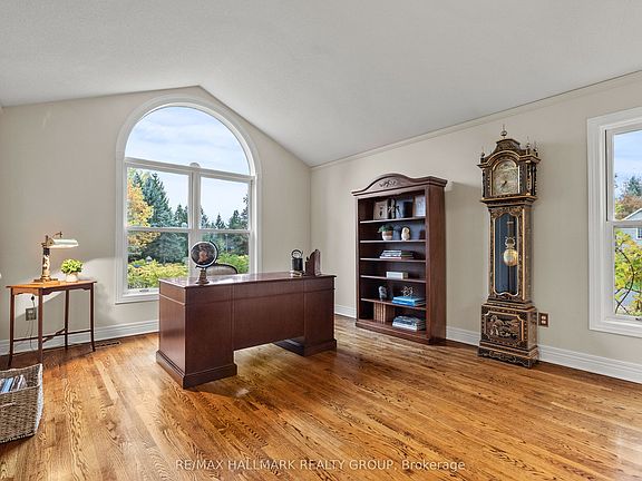 *** OPEN HOUSE: SUNDAY NOV 9, 2-4 *** Welcome to this grand executive residence in the exclusive enclave of Fallowfield Village, where timeless design meets modern comfort. Set on a beautifully landscaped lot, this exceptional five bedroom home (including a main-floor guest suite) offers elegant, spacious living throughout. Custom built by a respected local contractor for his own family, this residence showcases superior craftsmanship and attention to detail. The soaring great room features a cathedral ceiling, brick-hearth fireplace, and expansive windows filling the space with natural light. The large eat-in kitchen overlooks tranquil backyard gardens, while a main-floor office with French doors provides an ideal work-from-home space. Upstairs, the luxurious Primary Suite includes a turret-style sitting room and spa-inspired ensuite. The fully finished lower level offers flexible living space for a gym, media room, or playroom. Outside, enjoy private, landscaped grounds with lush gardens and mature trees, plus an oversized double garage. Recent updates: roof shingles (2025), two great room windows (2025), professional painting (Oct 2025), updated lighting. Generac generator included for peace of mind. Minutes from Kanata & Barrhaven and set in a charming, close-knit village setting.