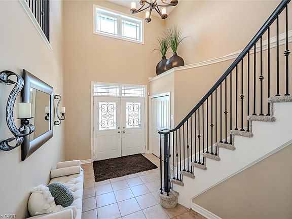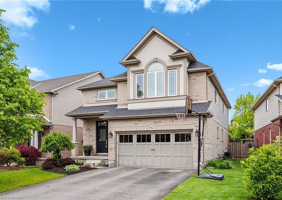 Welcome to 16 Hall Avenue, Where Style Meets Function in Guelph's South End! Perfectly designed for the modern family, this beautifully finished home offers both elegance and practicality. A classic brick façade and double door entry open to a bright foyer with soaring two-storey ceilings.Host with ease in the formal dining room, featuring a tray ceiling and statement chandelier. The space flows into a spacious great room with herringbone-patterned hardwood floors and custom millwork - one of many upscale details throughout. At the heart of the home is a gourmet eat-in kitchen with custom cabinetry, Caesarstone Quartz counters, under cabinet lighting, and a glass tile backsplash. The central island and bright breakfast area open to the large rear deck ideal for indoor-outdoor living. A practical mudroom with garage access, built-ins, and a utility sink keeps busy households organized. Upstairs, the primary suite is a relaxing retreat with backyard views, a walk-in closet with built-ins, and a spa-like ensuite with a soaker tub, walk-in shower, and gold fixtures. Three additional bedrooms share a 5-piece bathroom with double vanity, and a second-floor laundry room adds convenience. The fully finished basement offers luxury vinyl plank flooring, pot lights, and big windows for natural light. Enjoy the sleek fireplace in the Rec room, and host movie nights in the adjacent theatre room (or optional fifth bedroom). A modern 3-piece bath and bonus space for an office, gym, or playroom complete the level. The fully fenced backyard includes a custom trellis and generous deck perfect for dining, play, or gardening. Walk to schools, parks, and amenities, with easy access to commuter routes. 16 Hall Avenue is the full package!
