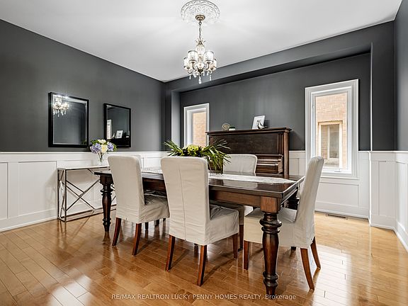 16 Haverhill Terrace is a beautifully appointed residence that blends elegance with everyday convenience. The main floor offers an inviting layout designed for both daily comfort and stylish entertaining. A bright office with hardwood floors located at the front of the house and a smooth ceiling provides the perfect workspace, while the formal dining room with wainscoting sets the stage for memorable gatherings. The expansive family room is a true highlight, showcasing soaring two-storey ceilings, a cozy gas fireplace, and custom built-in shelves that add warmth and character overlooking the swimming pool. The gourmet kitchen is a chefs delight, featuring a centre island, tile floors, stainless steel appliances, and a seamless connection to the breakfast area, which walks out to the private backyard oasis. A convenient laundry room, 2-piece bathroom, and direct garage access further enhance the functionality of this level. Upstairs, the primary suite provides a private retreat with a walk-in closet, a luxurious 5-piece ensuite, and serene views of the backyard. Three additional bedrooms each offer windows, double door closets, and carpet, served by a shared 4-piece bathroom. An extra-large hallway creates brightness and an additional sitting area. The finished basement extends the living space with a generous recreation room enhanced by pot lights, a bright window, and carpeted floors, along with an additional bedroom, a dedicated gym, and a 2-piece bathroom. Step outside to backyard retreat, featuring a pool, pergola, interlock landscaping, and a spacious patio perfect for warm-weather enjoyment, entertaining, and relaxing in style. Combining timeless finishes, a versatile floor plan, and a prime location, this home delivers comfort and convenience for the modern family. Situated in a highly desirable neighbourhood, it offers proximity to top-rated schools, parks, nature trails, shopping, Highway 404, and public transit, including the Aurora GO Train station.