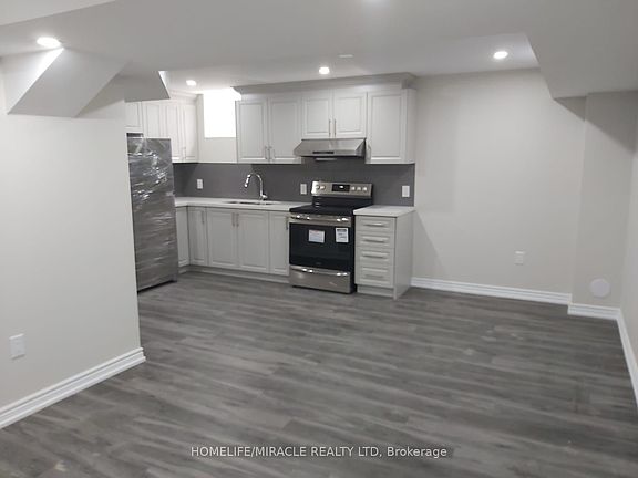 Move in ready! Nestled in a quiet, family-friendly neighborhood. This clean and bright legal basement unit features 3 bedrooms, 2 bathroom , big kitchen with covered separate entry and ensuite laundry. laminate flooring throughout and 1 dedicated driveway parking spot. Conveniently located just minutes from Go Station, highway, parks, and Hospital. Utilities are 35% sharing. Don't miss your chance to live in a well-maintained home in an unbeatable location! Second parking available with additional charges. Rent $2300 + 35% utilities.