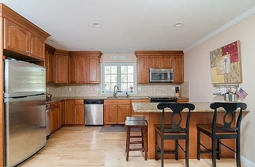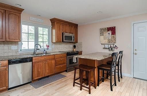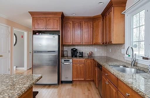 Custom Colonial with everything you are looking for! The moment you walk in, you will enjoy the floor-plan that has the formal dining room opening up to the kitchen, which leads to the living room with a fireplace, perfect for entertaining. The kitchen is complete with cherry cabinets, granite countertops, stainless steel appliances & a breakfast bar. You will appreciate the all the upgrades which include central air, crown molding, raised paneling, trek decking, gleaming hardwood floors & recessed lighting. The master suite is complete with a walk-in closet, your own private bath that has a double vanity and a jacuzzi tub. The walk-up attic is perfect for extra storage and could always be finished for additional space. The basement is complete with a finished playroom and also has the perfect space for home gym. Other features include a 2-car garage, central vac, & a well for irrigation. The backyard is private and features a deck and patio. Located at the end of a cul-de-sac.