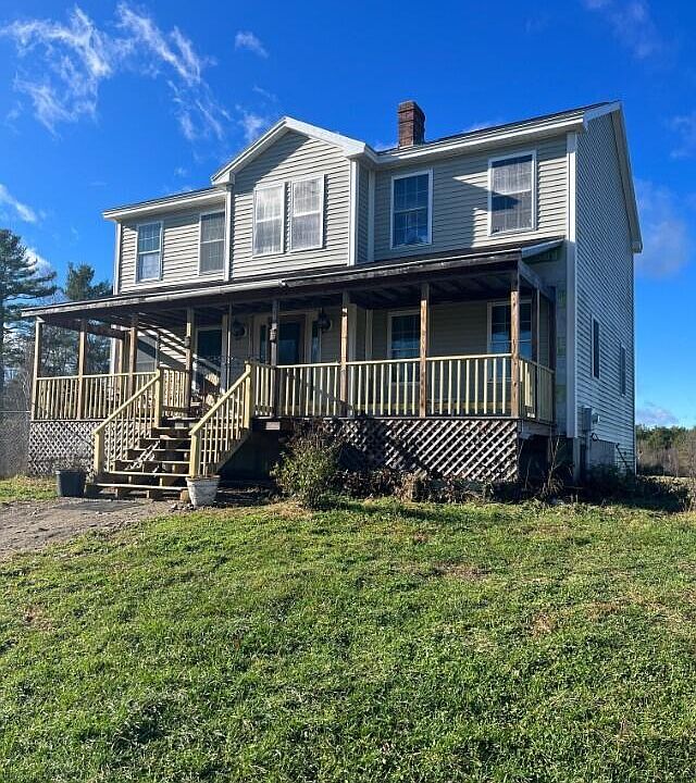 Centrally located between Augusta and the Coast, this Colonial built in 2003 has a farmers porch and is located on a dead-end road. This lovely home sits on 2.2 acres. When you enter through the front entryway, the living room is on the right and opens up to the dining area. The custom kitchen boasts lots of cabinet space and center island. The layout of this home is perfect for entertaining family and friends. Sit at the dining room table and enjoy the view of the field out back. The first floor bathroom has a jetted soaking tub plus a separate shower. Also on the first floor is a bonus area that makes a perfect spot for an at home office, playroom, or any other use you can think of. Upstairs you will find the primary bedroom that is front to back & has a spacious closet. There is additional space upstairs that is large enough to use as a den. The high entry way ceiling allows natural light to flow upstairs. The 2nd front bedroom has a closet and the 3rd bedroom has a closet and wonderful views of the field too! If you are looking for additional space, the basement can easily be finished! There is a full bath with shower & washer/dryer hook up, that just needs sheetrock and flooring to be finished. The 2 car garage is currently being used as a barn/workshop and has storage above. The yard offers everbearing strawberries in that bed by the porch, lilacs and fir trees down by the pool. Macintosh apple tree and some crabapple trees, and a forsythia bush to the left by dog kennel and another flowering bush and a daylily bed down by stonewall. Come enjoy all Whitefield has to offer. (This home is currently heated by a woodstove that will be removed prior to closing and the sellers have a forced hot air furnace that they will be hooking prior to closing- Sellers are also removing small shed outside).