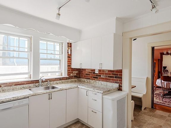 Excellent Newton Corner location, 7 room, 3 bedroom, 2nd floor condo with unfinished attic space for future expansion possibilities. Kitchen was updated this year with new cabinets, counter, and tiled floor. There is separate dining area with built in benches, and a table plus cabinets for additional storage. The dining room & living room offer plenty of natural light and the living room has a fireplace, and the natural wood work brings character to the home. There is a large deck off the back for dining and enjoying summer evenings. There is a garage space for 1 car and will be installing a new roof next month.