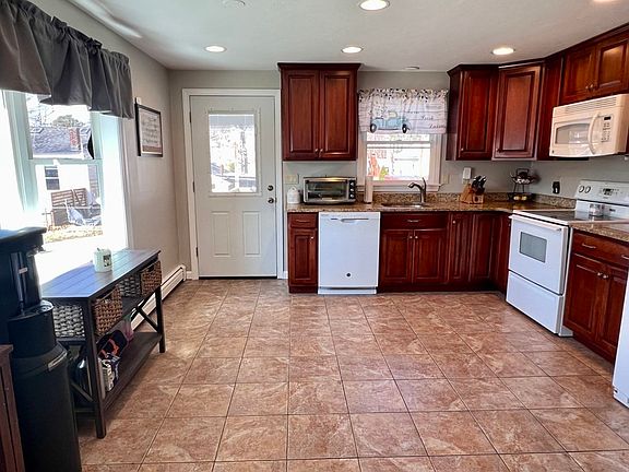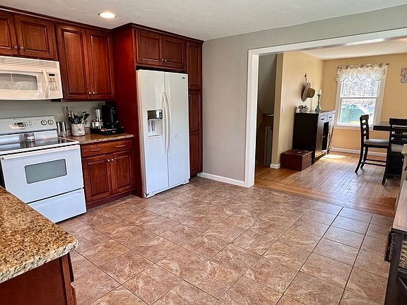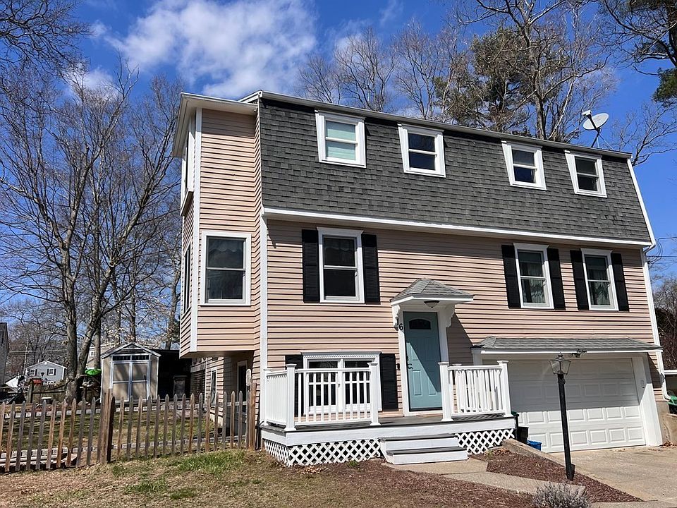 Motivated Sellers!! This 4-bedroom home has great space both inside & out! A unique split-entry Gambrel with one bedroom down and three up offers tons of options for living space, office and play/rec rooms. A bright, sunny home with hardwoods throughout first floor living room, bedroom, dining room and all second floor bedrooms, as well as hallways and stairs! The large kitchen offers granite countertops and plenty of room and is open to adjacent dining room. Finished basement adds more space for you to use as you please (400+ sf more!) So many options with a bathroom in the basement and on every floor. Outside offers a fenced-in yard with great deck for entertaining as well as yard with rustic tiki bar! Oversized one-car garage under, paved off-street parking and large back and side yard make this a great find! A great home to get into in Norton, on a quiet side street,great access to highway to get to Providence and Boston. Home comes with 1-year American Home Shield Warranty!