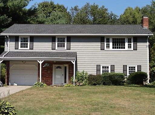 Welcome to this charmingly updated raised ranch situated on a private lot within short walking distance to the commuter rail. What could be better than to move to a classic New England town with outstanding schools and into a friendly, private neighborhood. This beautifully maintained home has been remodeled and has an open concept living room, dining room, and kitchen making for a spacious entertainment area. The kitchen boasts granite counters & stainless steel appliances & there is hardwood throughout the entire main floor. The sunlit cathedral ceilinged playroom opens out to an exquisite bi- leveled decking system & your own private in- ground pool. What a lovely way to relax after a long day at work.The living room, with its distinctive tile fireplace, flows smoothly into the dining room allowing for large parties or intimate evenings. There are three generous bedrooms on this floor, however, once you venture downstairs, you will find a lovely family room & fourth bedroom & bath.