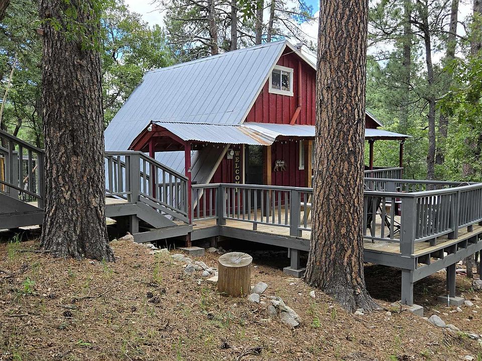 Must see cute getaway cabin with possibility of AirBnB rental income when not being used by owners. The cabin is located on three lots totalling .759 of an acre. There is a fenced yard for your furry friends. Hot water heater, kitchen range, and living room wall heater have been recently replaced.