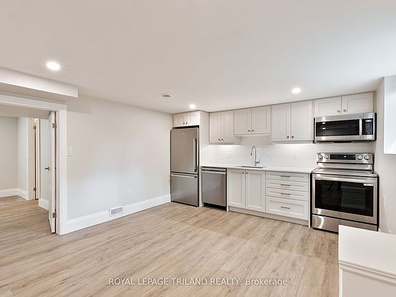 FOR LEASE - LOWER LEVEL. Welcome to this fully renovated lower unit at 16 Inverary Road! Designer inspired 1 bed, 1 full bath unit that includes high end finishes throughout. Durable luxury vinyl plank (LVP) floors flow throughout the entire unit, which is flooded with natural light from the two oversized windows. The STUNNING remodelled eat-in kitchen features modern cabinets to the ceiling, quartz counters w/ under mount quartz sink & plenty of storage. This multi-purpose kitchen/living area has been setup to allow for a cozy environment to unwind & entertain! The spacious bedroom offers plenty plenty of storage and features a 3 piece, luxury ensuite with full size stacking washer and dryer! 1 parking spot, fenced in rear yard and private entrance. Fantastic North London location, that offers countless amenities all within a short walk or drive. Close to neighbourhood schools, parks, shopping, and Western University. Available at $1,500/month plus hydro. Heat and Water included! Available Immediately!
