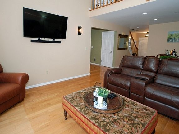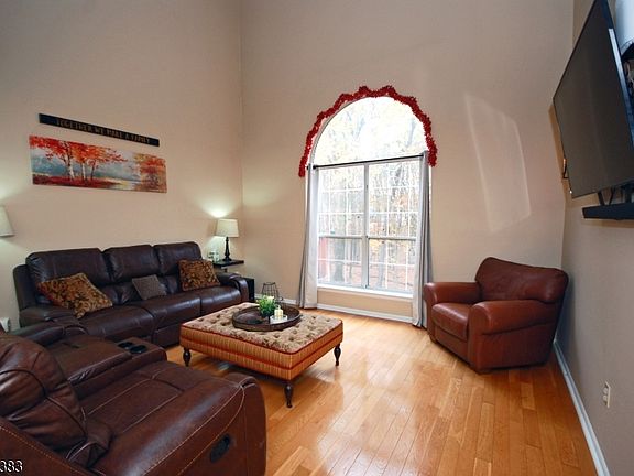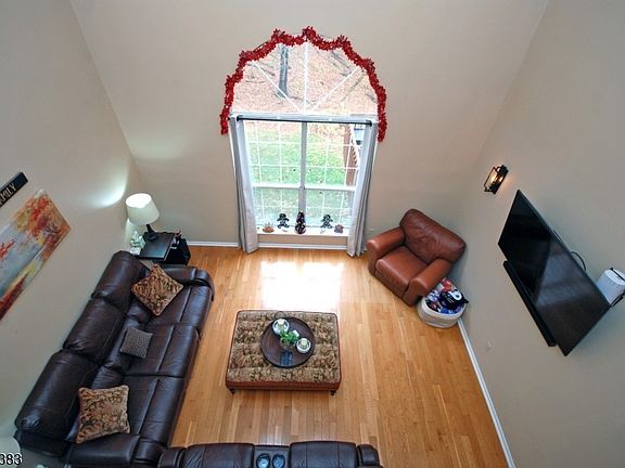 Priced To Sell! This 2-bedroom, 2.1-bath townhome offers 1720 sqft and is located on a large cul-de-sac. The light-filled LR features a dramatic vaulted ceiling, palladium window, hardwood floors and skylights creating an airy and open feel. The updated KIT offers granite countertops, upgraded cabinets, and a charming walk-in bay window breakfast nook. The adjoining FR includes a fireplace (gas line capped, easily convertible) and slider to the deck. Upstairs the spacious primary suite features a 7'x6' sitting area, double closets, and a luxurious en-suite bathroom with double sink vanity, soaking tub, shower stall, and is enhanced by elegant Venetian plaster paint. The second bedroom is generous in size with its own full bath access. The finished Walk-Out Basement adds exceptional living space with a Den, Office/Guest Room with closet, Storage Room, Bonus Room used as a Walk-In Closet, and slider to a private patio overlooking the wooded backdrop. Recent updates: hardwood floors upstairs (2017), garbage disposal (2024), chimney cap (2017), roof & gutter guards (2024), some windows and basement slider (2019), hot water heater (2018), toilets (2021). Additional highlights include first-floor laundry, LOW HOA FEE - $258.50 QUARTERLY. Walk to Olde Towne Park and Silver Saddle Pool. Minutes to Branchburg Train Station, Bridgewater Mall, restaurants, and major highways. Living room TV & soundbar included. Move-in ready, this home won't last!