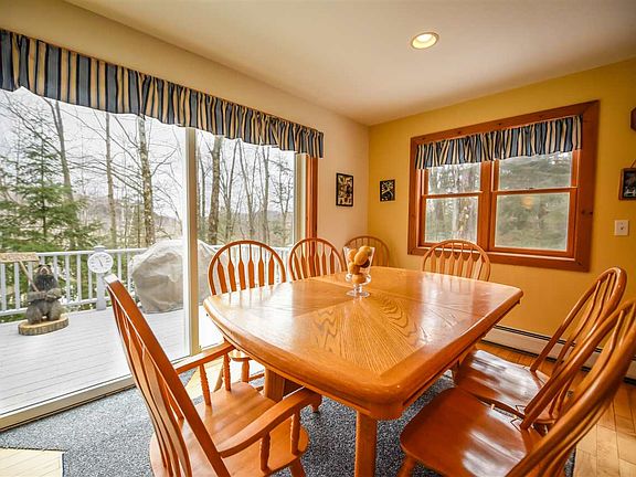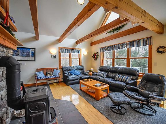 Beautiful 2001 home just a short drive from Mount Snow with easy access to local amenities. This home sits on a private corner lot that offers tremendous sunny exposure, winter mountain and sunrise views, public sewer for peace of mind, and ample parking. Look up at the slopes of Mount Snow from your driveway or laze by the fire pit in the cool Vermont summer evenings. Inside you are treated to spacious open concept living spaces with beautiful natural woodwork and light, 3 bedrooms each with their own full bath, a warm kitchen with large island, living room with stove on stone hearth, exposed wood beams, and vaulted ceilings, a great loft for overflow sleeping or space to work from home, large family room in the walkout lower level also with stove and great light, deck for outdoor eating and entertaining, mudroom with bench and cubbies, and covered front entry to keep you out of the elements. Large double deck, one with hot tub, and outdoor fire pit area. This home has all the size and convenience befitting an ideal second home.