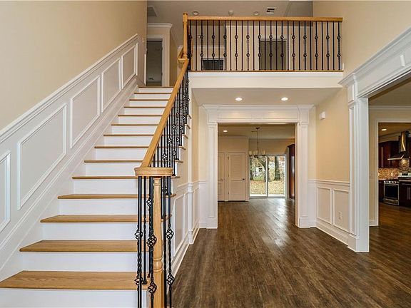 Be in this stunning new home for the New Year! Awesome Colonial built on pre-existing slab foundation has so many custom features. Pass under the majestic portico into the soaring two story foyer. Complex trim mouldings only found in far more costly homes. Great room sizes and sought after open floor plan. True 2 Zone, 2 Unit HVAC. Oak Floors and staircase w/ wrought iron spindles. Center Island kitchen with custom made 42" cabinets, granite counters, tile backsplash and under cabinet lighting. SS appliance package. All this so close to a much sought after Elementary school.