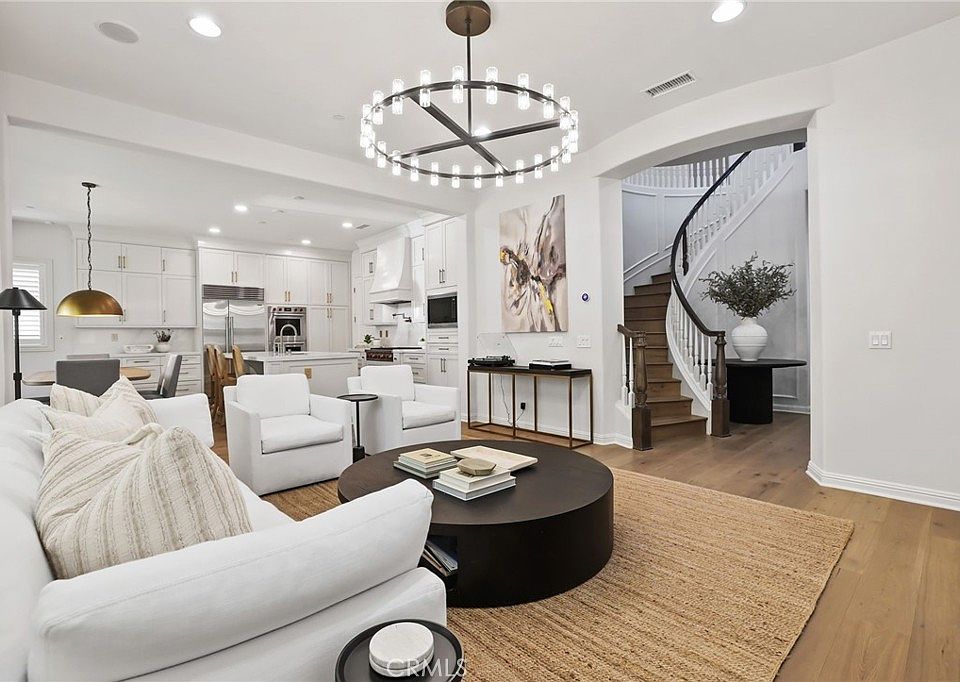 Custom Design and Breathtaking Aesthetics are the Hallmarks of this Exceptional Residence! Live your Dream Lifestyle at 16 Juniper, an Exquisite Warm Architectural Residence in Baker Ranch. This Newly Remodeled Masterpiece is a Quintessential Blend of Sophistication and Design, Tailored for the Discerning Buyer with a Palate for On Trend Serene Luxury. As you enter through the Solid Wood Tuscan Door you are Greeted with Soaring Two-Story Ceilings, Grand Spiral Staircase & Wide Plank European Oak Wood Flooring that Seamlessly Blends Comfort & Functionality. Experience Effortless Elegance in the Chef’s DREAM KITCHEN where Serene Simplicity meets Refined Functionality. The Warm Organic kitchen pairs Floor to Ceiling Cabinetry with Neutral Calcatta Elysio Quartz Countertops & Backsplash, Fireclay Sink Basin, Designer Brass Accent Hardware, Wolf Appliance Package w/ Built In Subzero Refrigerator & Sculptural Lighting to Create a Calming yet Elevated Heart of the Home. From your Picturesque Formal Dining Room Area, push open the Sliding Doors for a Fresh Breeze that Perfectly blends to the Serene Lush Landscape of your Outdoor Oasis. The Open Concept Great Rm provides the perfect ambiance for entertaining with Built-In Surround Sound Speakers, Custom Restoration Hardware Iron Curtain Rods, Solid Wood Wainscoting and Neutral Toned Limestone Fireplace. The Downstairs Bedroom and Full Bathroom has been Redesigned with New Calcatta Premata Quartz Countertops, On Trend Moen Brass Hardware, White Marble Shower Tile, Designer Accent Mirrors & Lighting. Follow the Stunning Spiral Staircase Upstairs where you will find the Spacious Multi-Purpose Loft, Redesigned Custom Laundry Room & 3 Additional Bedrooms including the Primary Suite Retreat, Perfectly Designed w/all the elements working together in harmony to invite ease and luxury. Begin your New Wellness Routine in the Opulent Spa Like Primary Bath w/New Calcatta Premata Quartz Countertops, White Marble Restorative Shower, Laurent Cast Iron Porcelain Soaking Tub, Thaddeus Floor Tile, Custom Designer Sconces & Mirrors. Outside your Tranquil Backyard awaits with Perfectly Balanced Tuscan Landscaping, Built-In BBQ, and Spacious CA Room. Additional Upgrades for the Modern Day Buyer Include FULLY PERMITTED RENOVATIONS, Whole House Water Softening System & Reverse Osmosis, Two Tesla NEMA Wall Outlets, Spacious Garage w/additional Storage Cabinets & Epoxy Flooring...Properties like these rarely hit the market!
