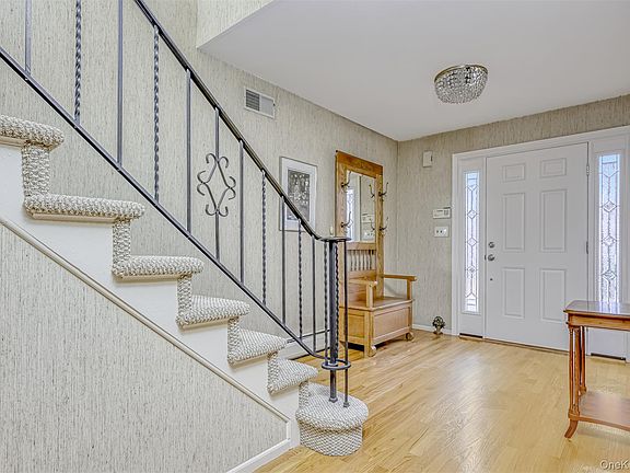 Montebello! Welcome home to this beautiful, immaculate colonial featuring a welcoming foyer that leads into a seamless living space where the living room flows effortlessly into the dining room, perfect for hosting. The eat-in kitchen offers granite countertops and high-end appliances, while the adjacent family room features a charming brick fireplace. A beautifully updated powder room, convenient main-level laundry room, and an attached two-car garage complete the first floor. Upstairs includes four large bedrooms, with the primary suite offering a stunning full bathroom and walk-in closet, and three additional bedrooms providing excellent space and generous closets. All of this sits on a beautiful, private property with an oversized deck featuring redwood flooring and cedar railings. This home has been exceptionally well maintained and will not last.