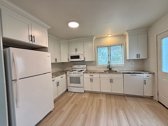 Granite countertopPartially fenced backyardLaminate wood floorsNewer kitchenWhite shaker kitchen cabinetsNew appliances