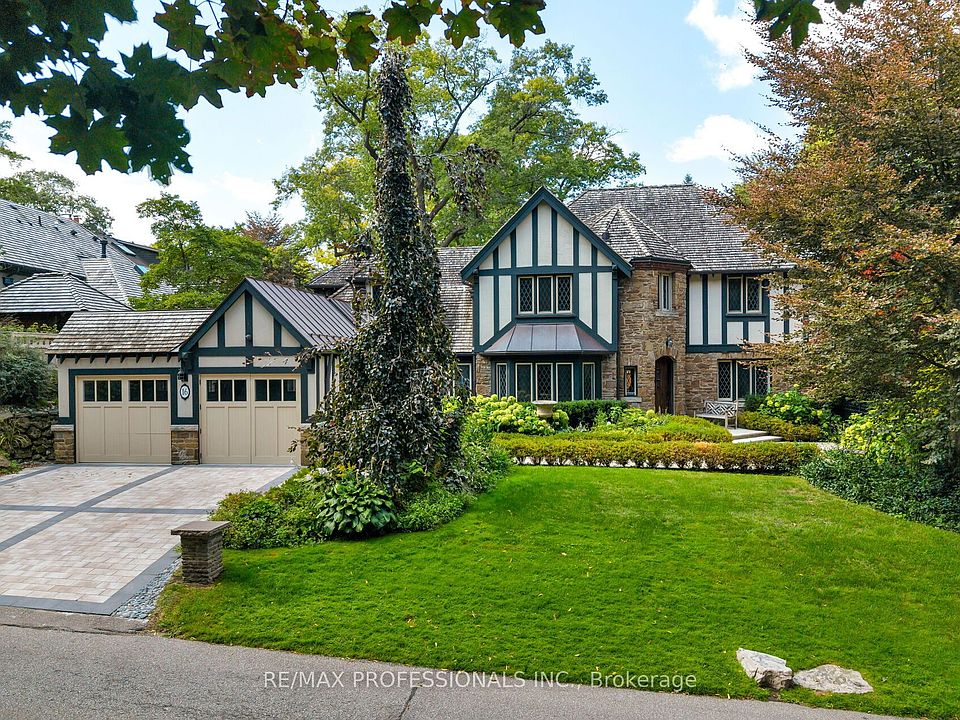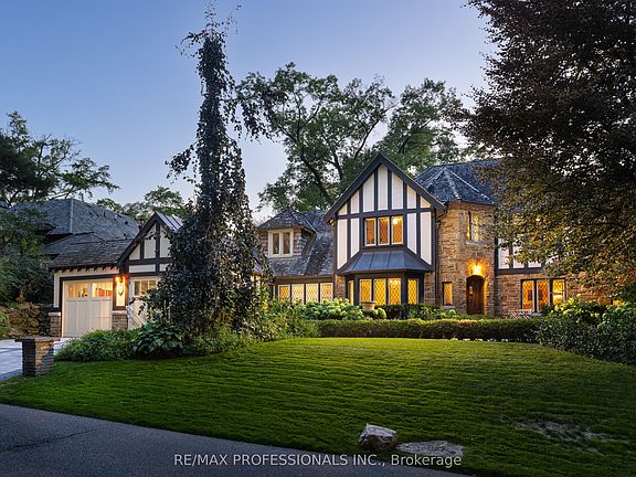 Magnificent R. Home Smith Tudor set on an elevated lot across from the Humber River Valley. Absolutely stunning architectural features, accompanied by gorgeous landscaping, an elegant foyer flanked by gracious principal rooms. The high-end, innovative, and luxurious Downsview designer kitchen opens to a courtyard patio, with a step up to a separate family room & formal dining room. The primary bedroom features a five-piece en-suite bath & multiple closets. Three additional bedrooms + two baths complete the charming second floor. Exquisite 3-car garage. Diamond-patterned leaded glass windows, tiger oak hardwood flooring & heated tile floors. #16 Kingsway Crescent remains an accurate aspirational address, perched at the intersection of the Kingsway's two most prestigious streets. Thoughtfully renovated to protect the building's vintage character, it offers a commanding presence, making it an excellent investment.