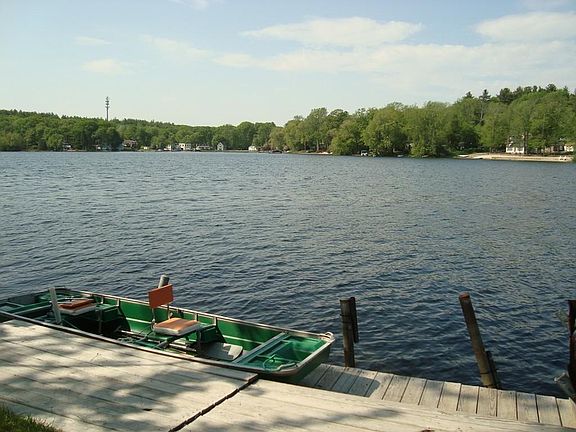 Beautiful Waterfront home on Lake Nipmuc. This home was rebuilt in 2005. Beautiful water-views with your own dock. Newer 2000 gallon tight tank. Block patio to sit and have your morning coffee on. Huge living room with three sets of french doors that lead to the front porch with full water-views of the lake . Nice tile kitchen with island with upgraded cabinets and dining room, Full tiled bath off the kitchen and also a separate laundry room.Upper level boasts a huge master bedroom with a walk-in closet -huge tiled master bath with jacuzzi tub- separate shower. There are French doors off the master that lead to a Romeo and Juliet balcony with beautiful water views.There are two additional good sized bedrooms with closets plus another full bath on the second level. This is a full recreational lake! Come and watch the beautiful sunsets from your balcony or your front deck!