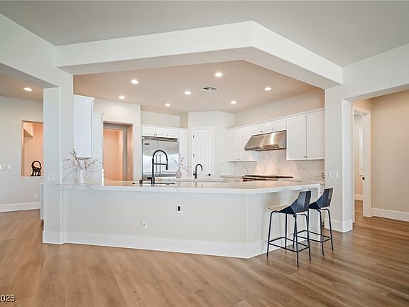 THIS STRIKING MODERN ESTATE IS LOCATED IN PRESTIGIOUS ANTHEM COUNTRY CLUB & FEATURES BREATHTAKING PANORAMIC VIEWS OF THREE GOLF COURSE HOLES (16TH, 17TH, & 18TH), THE LAS VEGAS STRIP, & SURROUNDING MOUNTAINS. THE HOME BOASTS A DRAMATIC CHEF’S KITCHEN WITH PREMIUM APPLIANCES INCLUDING A WOLF OVEN AND STOVE, VIKING BUILT-IN REFRIGERATOR, QUARTZ COUNTERTOPS, ISLAND, AND UPGRADED CUSTOM CABINETRY. THE LUXURIOUS PRIMARY BATHROOM OFFERS A STAND-ALONE SOAKING TUB AND DUAL UPGRADED VANITIES. THE RESORT-STYLE BACKYARD FEATURES AN INFINITY POOL & SPA, BUILT-IN BBQ, & A PRIVATE PUTTING GREEN — PERFECT FOR RELAXING. ADDITIONAL UPGRADES INCLUDE A TANKLESS WATER HEATER, WHOLE-HOUSE WATER FILTRATION SYSTEM, WATER SOFTENER, LENNOX HVAC SYSTEM, & LUXURY VINYL PLANK FLOORING THROUGHOUT THE HOME. 220-VOLT OUTLETS ARE INSTALLED FOR ELECTRIC VEHICLE CHARG, ENJOY STUNNING CITY & STRIP VIEWS FROM BOTH THE FAMILY ROOM AND THE PRIMARY BEDROOM, MAKING THIS PROPERTY A TRUE SHOWCASE OF LAS VEGAS LUXURY LIVING.