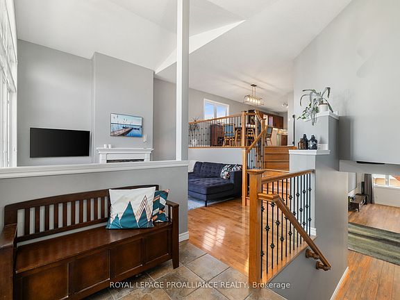 This not-so-ordinary 5-bedroom, 3-bath walk-out raised bungalow offers great space for entertaining indoors and out with plenty of space for families of all sizes. The vaulted main level living room with soaring picture window and cozy gas fireplace creates a unique and impressive, bright and open feeling throughout the main living areas. Generous dining area, great for family meals and dinner parties, is open to the stylish kitchen with waterfall quartz countertop, peninsula seating, tiled backsplash, and stainless steel appliances. Step through the garden door to the upper deck with metal pergola the perfect spot to start your day or enjoy warm summer nights. 3 bed 2 bath main floor layout makes daily routines flow easily. The spacious primary suite includes a 3-piece ensuite, while 2 additional bedrooms are served by a spacious 4pc family bath with plenty of storage. The walk-out lower level offers fun and flexibility with 2 additional bedrooms, a 4-piece bath, and a large rec room with gas fireplace and direct access to the hot tub. Great space for large families or hosting overnight guests, or create dedicated home gym and office space. A generous laundry room with access to plenty of storage completes the space. Outdoors, enjoy a fully fenced, low-maintenance backyard with an above-ground pool, hot tub area, handy under-deck storage, and mature trees backing onto the scenic Lower Trent Trail. The double attached garage provides excellent parking and storage, with space versatile enough for a golf simulator. Located in the welcoming community of Frankford, you'll enjoy riverfront fun, outdoor recreation, and a quick drive to Batawa's ski hill and trails. Updates include: Roof (2022), On Demand Hot Water Heater: (2025) and AC (2025). With space to relax, play, and entertain, your family is sure to Feel at Home at 16 Kyle Court.