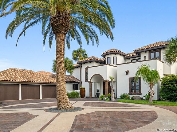 Discover the epitome of luxury coastal living at Casa Mombasa, a 4 bedroom/4 bath/2 half bath home nestled on 1.34 acres of waterfront. This exclusive estate was featured on Forbes and blends African modern interior aesthetics with a Mediterranean inspired exterior. Exquisite finishes throughout, including mesquite wood & travertine flooring adorned with floor lighting. Open concept living & kitchen areas with top of the line appliances & surround sound. Amenities include a wine room/office, bonus room, and large bedrooms. The primary bedroom is a sanctuary, complete with a gas fireplace, bathroom featuring a private courtyard, a soaking tub, & walk-in closet. Resort style outdoor oasis with an infinity pool/spa, swim-up bar, pool bath, outdoor kitchen, fire pit, 2 boat slips, and space for a yacht. Meticulously landscaped with a sprinkler system & outdoor lighting. Massive detached ICF boat garage with half bath & tackle room with offshore boat finishes. Most furnishings convey.