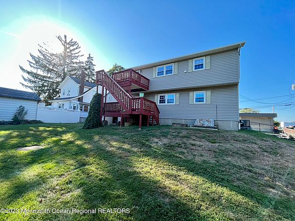 Rare find! Two-family home in desirable Oceanport! Featuring 3 bedroom, 1 bath, lower level unit with hardwood floors, fresh paint and access to full basement. Second apartment occupies entire top floor and has 2 bedrooms, 1 full bath, hardwood floors, open layout, large eat-in kitchen with center island and sliding doors to rear deck. Home boasts spacious, fenced in lot, two sheds, oversized detached garage. Won't last. Home currently does not have any tenants.