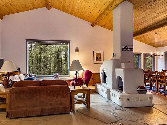 This custom SW style home has been used lovingly by this owner for years of memory making for their large extended family. The two sided stone fireplace separates the main living area from the dining room and kitchen area. The master is on the main level, as well as the garage, utility room, dining and kitchen. Downstairs features another entire living area with wet bar, fireplace, 3 bedrooms, 2 bathrooms and another utility room. Situated on a quiet cul-de-sac that backs up to a greenbelt that is used for hiking and non-motorized use. Just minutes from the Village core and all the Angel Fire Resort amenities and is easily accessible year 'round.