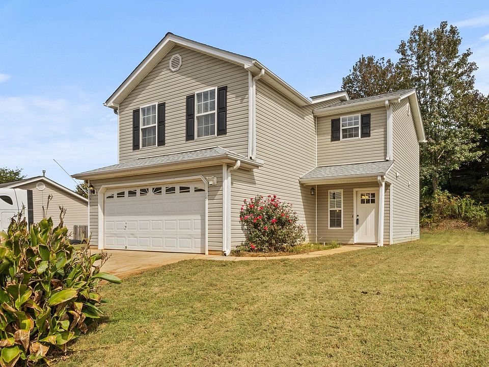 This move-in ready 3-bedroom, 2.5-bath home offers a comfortable and functional layout with modern finishes throughout. The open-concept main level features a bright family room, spacious dining area, and a well-appointed kitchen with laminate counters, pantry, and all major appliances—including the refrigerator, range, microwave, and dishwasher. The laundry closet is conveniently located on the first floor. Upstairs, the large primary suite includes a walk-in closet and full bath with a tub/shower combination. Two additional bedrooms and another full bath provide plenty of room for family or guests. Outside, you’ll enjoy a level lot with a patio—perfect for grilling or relaxing—and an attached two-car garage with paved driveway. Located in a quiet neighborhood in Piedmont, this home offers easy access to Greenville, Simpsonville, and major highways, while keeping you close to shopping, dining, and schools. With central air, gas heat, and low-maintenance vinyl siding, this home is both efficient and affordable. Don’t miss your chance to make 16 Laws Lane your new home—schedule your showing today!
