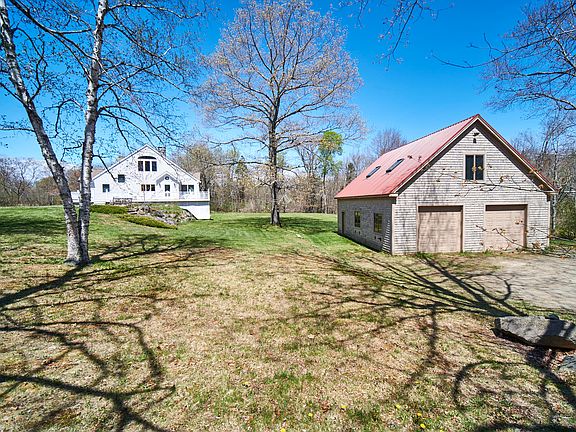 This wonderful four bedroom contemporary cottage-style home boasts a spacious detached boat barn/garage with a workshop on the first floor and potential for additional living space on the second floor. The main level features of the home includes a large great room with a granite fireplace, a professional eat-in kitchen, a primary bedroom suite with attached full bathroom with a soaking tub and separate shower, a dining room, half bath, and a den/office. The great room is equipped with a heat pump for extra heating and cooling, and there is a great covered deck and large entry deck overlooking the grounds.