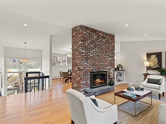 Nestled on a wooded lot, this 4-bedroom, 2-bathroom deck style home offers a perfect blend of comfort and natural beauty. Inside, you'll find gleaming hardwood floors throughout the main living area, adding warmth and elegance. The spacious living room features a cozy fireplace, perfect for relaxing evenings. The well-appointed kitchen with ss appliances flows seamlessly into the dining area, ideal for entertaining. Step onto the screened-in porch to enjoy peaceful views of the surrounding nature. The primary bedroom, 2nd bedroom and a full bath complete the main level. The 1st floor offers an additional 2 bedrooms and bath, family room with additional fireplace and laundry/mudroom area. The property provides privacy and a peaceful retreat while still being conveniently located to downtown. Whether you’re relaxing on the outdoor deck or entertaining guests, this home provides a warm and inviting atmosphere in a beautiful wooded setting of a neighborhood that can't be beat.