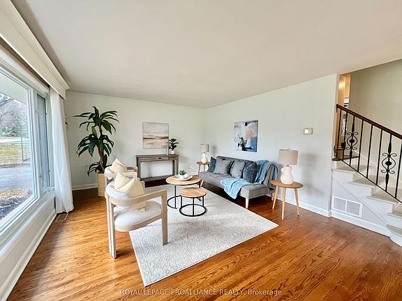 Nestled on a quiet street in Belleville's desirable East End, this charming all-brick 3-bedroom back-split sits among mature trees on an oversized lot. The location is highly walkable, just steps to schools, parks, and everyday amenities-send the kids out to play at the park down the street and enjoy the peaceful neighbourhood feel. Inside, an open-concept living and dining room features a large front window and beautifully refinished hardwood floors that continue through the main and upper levels. The bright kitchen offers quartz counters, stainless steel appliances, and a walkout to a private side-yard patio. The finished lower level, complete with above-grade windows and a separate entrance, is ideal for an in-law or guest suite. Updates include windows, doors, high-efficiency gas heating and an oversized garden shed in the private yard. This property is an excellent opportunity for first-time buyers, downsizers, or investors seeking an updated, efficient home in one of Belleville's best locations.